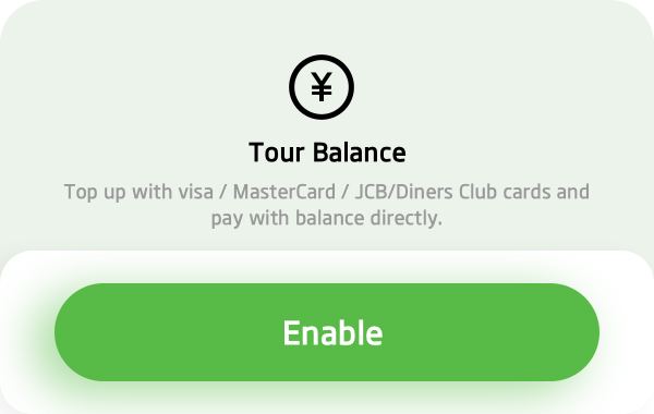 Enable Tour BalanceTap “Enable” button and proceed by entering your mobile number and SMS verification code as guided on the page.