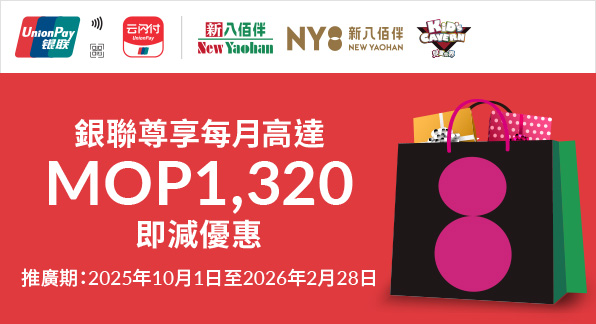 • 該資訊僅供參考,具體權益或優惠以商戶為準,如需瞭解更多銀聯卡受理商戶,請識別“銀聯”標誌銀聯標識。