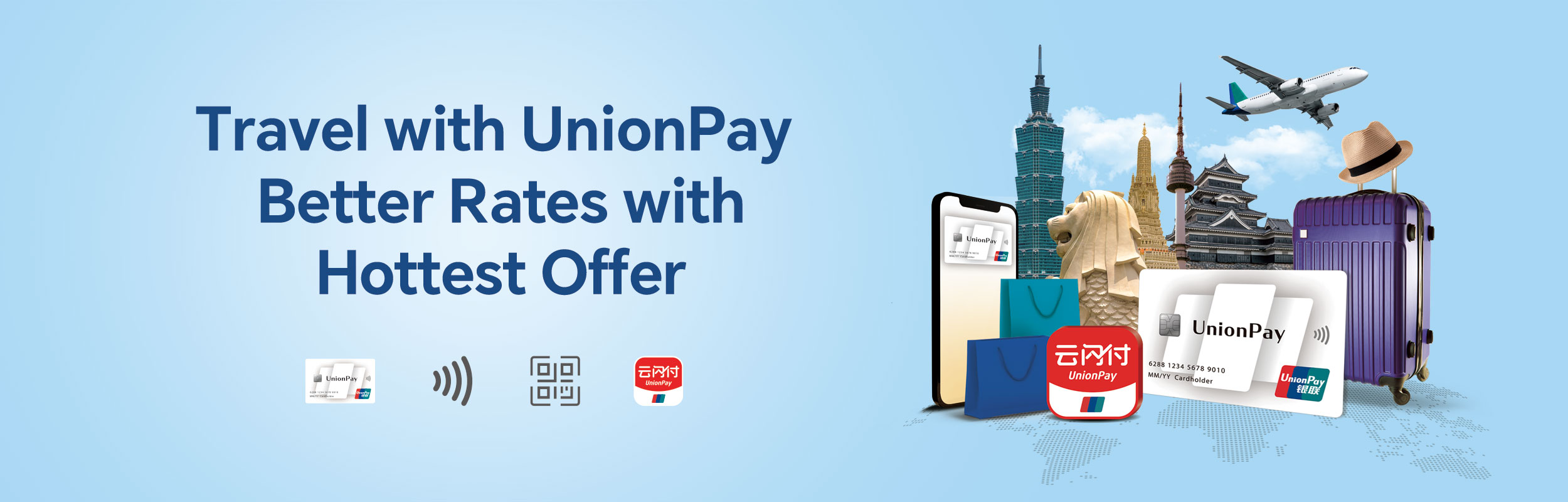 Enjoy privilege offers upon spending with UnionPay Card, UnionPay QuickPass Card, UnionPay Mobile Pay, UnionPay QR Code and UnionPay APP.
