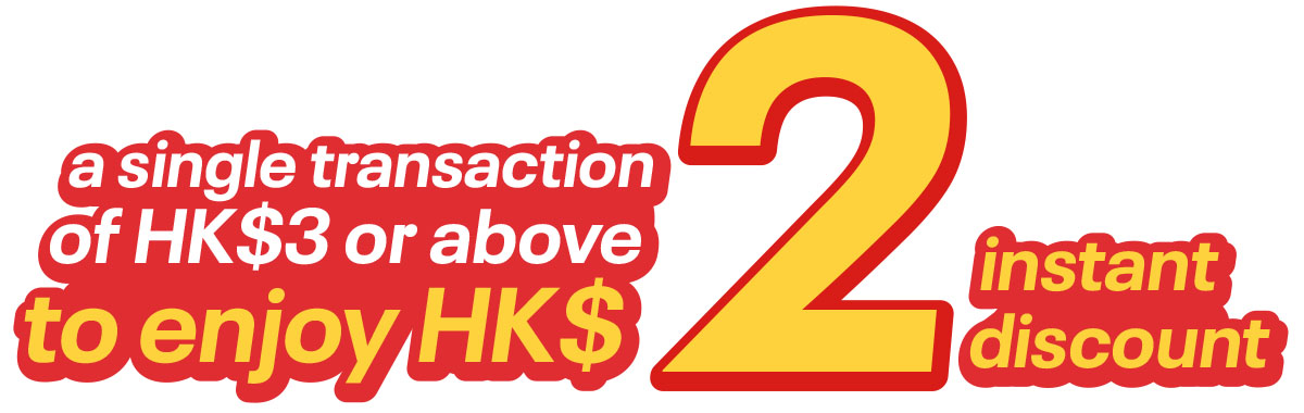 - Every Friday, Saturday and Sunday during the Promotion Period, cardholders who successfully pay the fares of MTR, Kowloon Motor Bus (refers to "KMB"), Long Win Bus (refers to "LWB"), Citybus, Cityflyer, New Lantao Bus (refers to "NLB"), Green Minibus (refers to "GMB"), HK Tramways, Hong Kong & Kowloon Ferry (refers to "HKKF"), Sun Ferry and Star Ferry can enjoy HK$2 instant discount upon a single transaction of HK$3 or above (refers to "Offer").