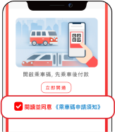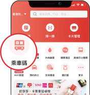 進入服務頁面注意:港鐵乘車碼僅適用於香港地鐵,若乘搭巴士或其他交通工具,請點選「乘車碼」使用服務。