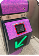 入閘時,將港鐵乘車碼對準港鐵閘機上的掃描器