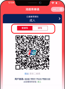 在港鐵乘車碼服務頁面,點擊「已選車票類別」,選擇合適的車票類別
