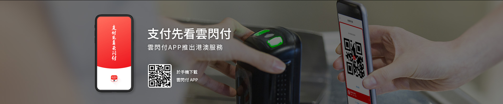 雲閃付App是銀聯聯合商業銀行、支付機構等產業各方共同推出的中國銀行業統一流動支付App,匯聚各機構的流動支付功能、特色服務與權益優惠,為消費者提供安全、便捷的一站式流動支付服務。港澳居民下載註冊雲閃付App,並綁定本地發行的銀聯卡,即可在本地、內地及跨境輕鬆掃碼及In-App支付,享受「一次下載,跨境通用」的移動支付體驗,全面提升本地消費者的移動支付體驗,爲粵港澳大灣區「一小時生活圈」提供安全、便捷的移動支付服務。